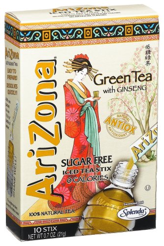 AriZona Green Tea with Ginseng Sugar Free Iced Tea Stix, 10 Count, (Pack of 6)